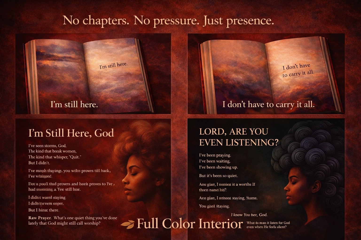 When Black Women Pray is a powerful, 200+ page lament-centered prayer book created for Black women who are done pretending, done performing, and ready to be honest with God.